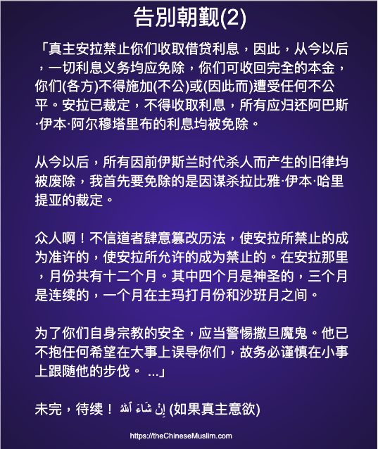一年一度的朝觐即将开始,朝觐主要是记念先知亚伯拉罕(ﷺ)的故事,他如何引领第二任妻子「夏甲」及他们的儿子「易司马仪」到达「麦加」并让他们在那里定居;「渗渗泉」如何出现;当先知亚伯拉罕(ﷺ)被受命献祭儿子易司马仪给真主安拉时,他们父子俩如何通过考验;因为通过考验,安拉为先知亚伯拉罕(ﷺ)指定天房的地址,让他们为安拉建造全世界第一所崇拜安拉的房屋——天房——并制定朝觐。
